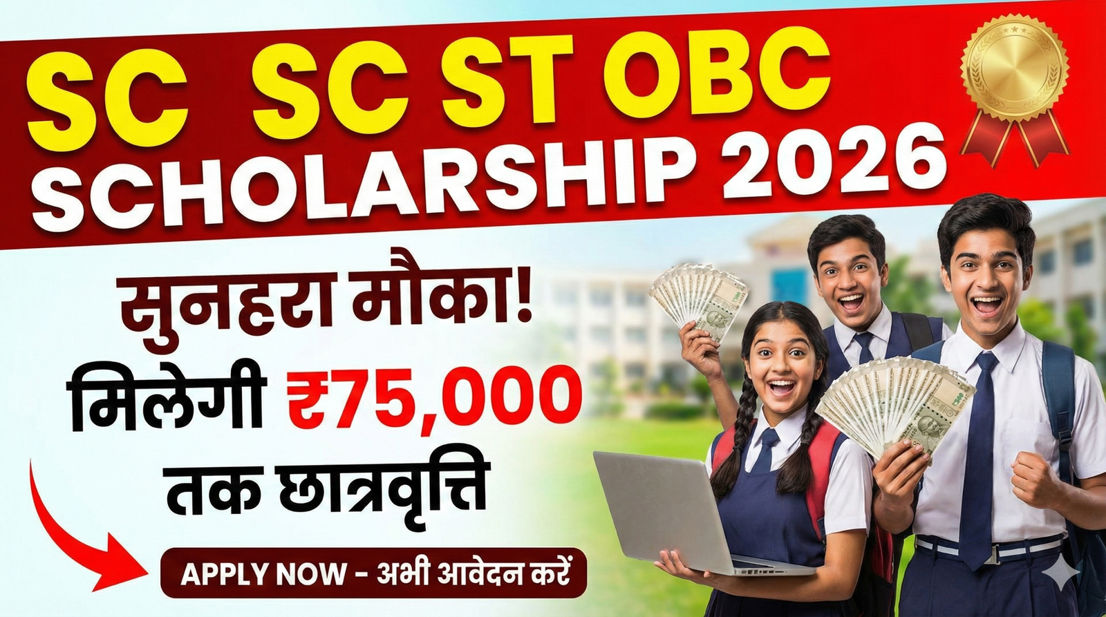 SC ST OBC Scholarship 2026: छात्रों के लिए सुनहरा मौका,मिलेगी 75 हजार तक छात्रवृत्ति