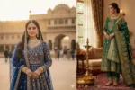 “Elegant couple in royal traditional outfits, palace background, luxury atmosphere, soft glowing lights, high fashion photography.”